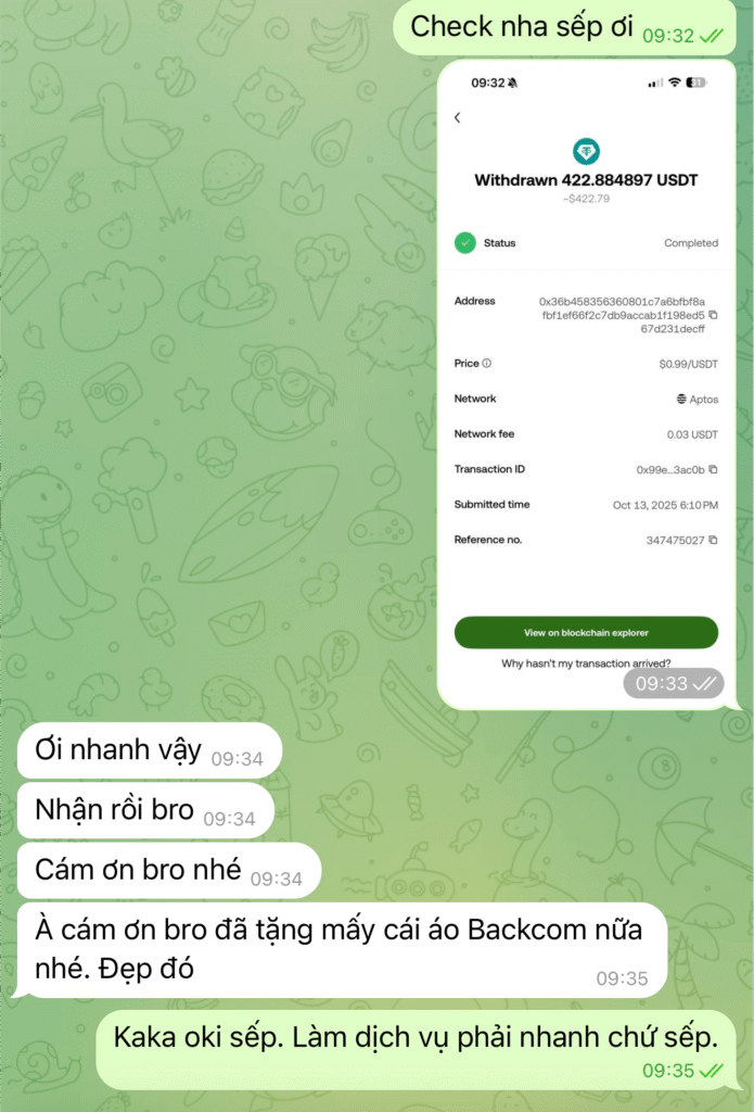 Phí hoàn lại sẽ được cộng vào tài khoản Backcom của bạn một cách tự động mỗi ngày. Bạn có thể theo dõi số dư cashback này trên dashboard Backcom.io. Đặc biệt, bạn có thể rút tiền hoàn phí bất kỳ lúc nào về ví crypto cá nhân của mình – không giới hạn thời gian hay số lần rút, rất nhanh chóng và tiện lợi. Toàn bộ số tiền hoàn lại đều thuộc về bạn để sử dụng tùy ý.