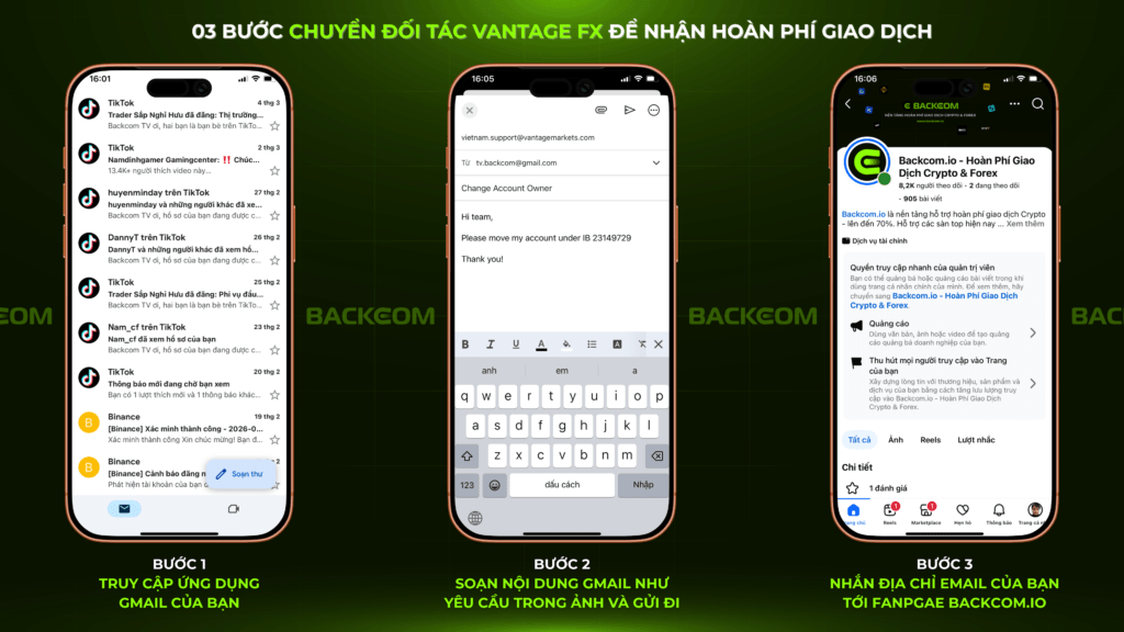 After sending the email, please contact Backcom.io via Fanpage Facebook or Admin Telegram using the same email to confirm rebate activation for your Vantage account.