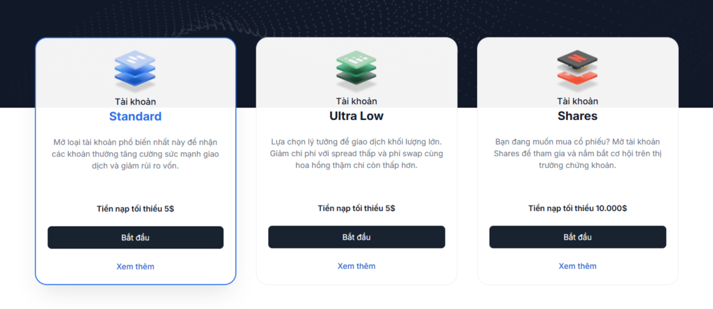 Các loại tài khoản XM là yếu tố quan trọng mà trader cần hiểu rõ trước khi bắt đầu giao dịch, bởi mỗi loại tài khoản sẽ có chi phí và điều kiện sử dụng khác nhau.