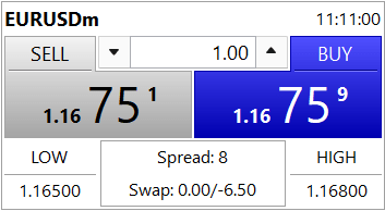 Giả sử bạn mở một lệnh Buy 1 Lot thì giá khớp của bạn sẽ là 1.16759 (Ask)