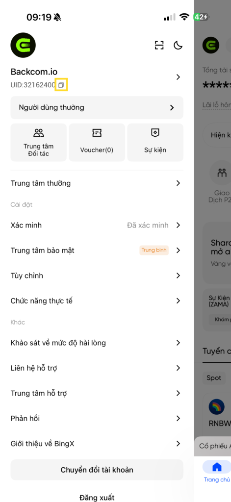 Cách lấy BingX UID trên App BingX