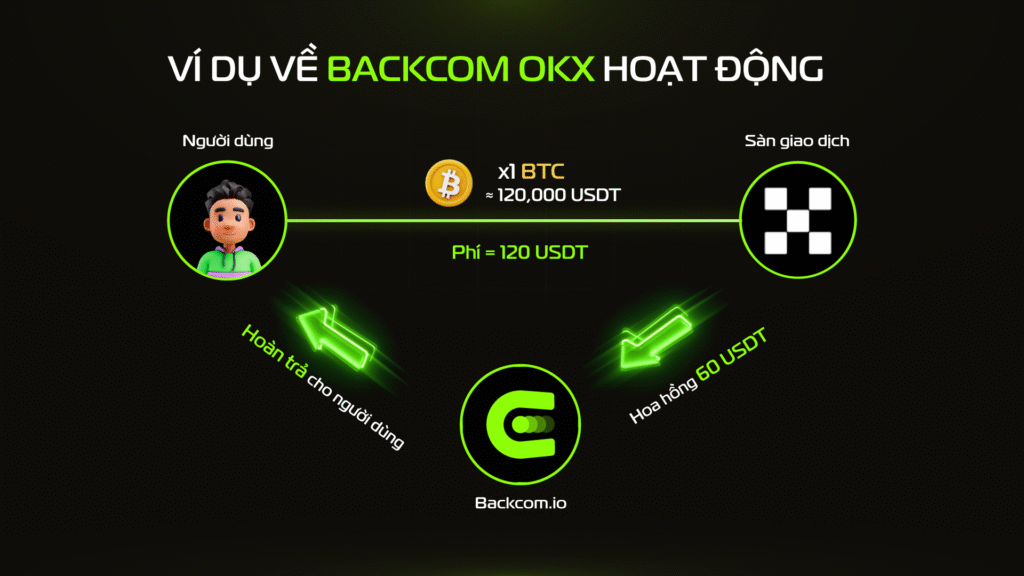 Theo chính sách đối tác (IB), OKX sẽ trích 50% phí này (tức 60 USDT) làm hoa hồng trả cho Backcom.io. Khi bạn đăng ký và giao dịch qua liên kết giới thiệu của Backcom.io, chúng tôi cam kết hoàn trả 100% số hoa hồng này trực tiếp về tài khoản của bạn.