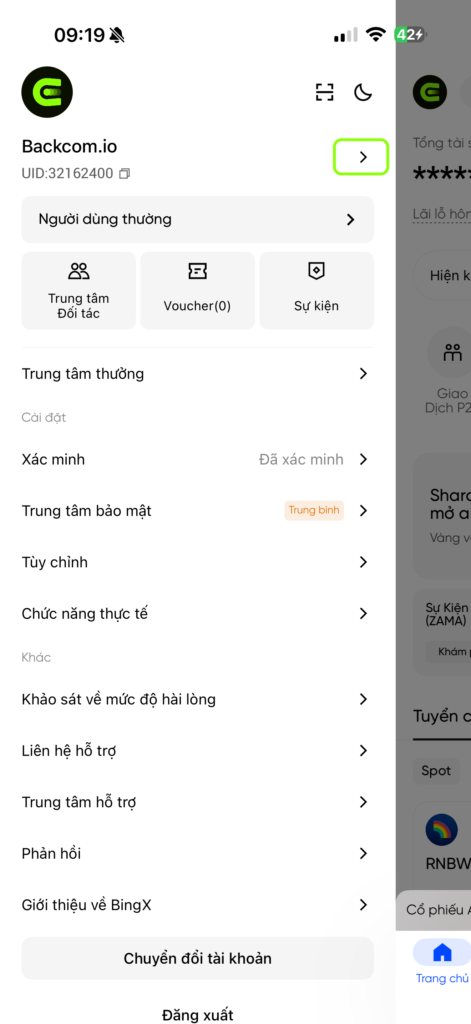 - Hoặc sử dụng tính năng chuyển danh tính BingX (nếu đủ điều kiện)