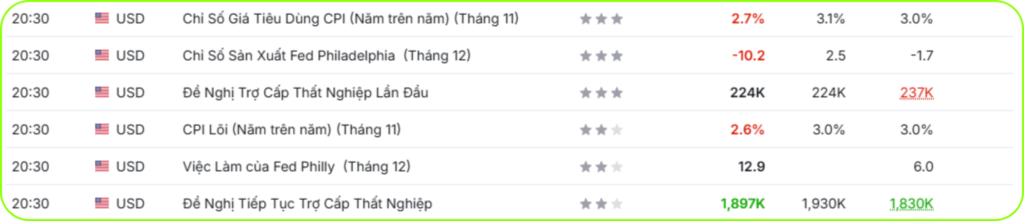 Chỉ số CPI YoY tháng 11 giảm xuống 2.7%, thấp hơn đáng kể so với kỳ vọng 3.1% và mức trước đó 3.0%. Đáng chú ý hơn, CPI lõi YoY cũng hạ về 2.6%, thấp hơn cả dự báo lẫn kỳ trước (3.0%).